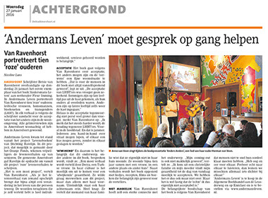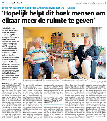 In het AD magazine van 6 augustus 2016 uitgebreid aandacht voor de lhbt'ers die moeilijk uit de kast kunnen blijven. Daarin ook aandacht voor het boek Andermans Leven en voor de auteur Betsie van Ravenhorst; www.ad.nl.